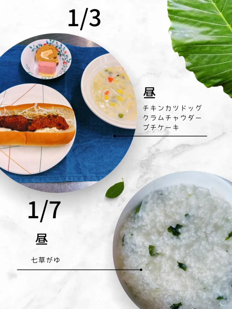 1月7日は七草がゆでした。消化が良く、冬に不足しがちなビタミン(特にビタミンC)を補給することもできます。